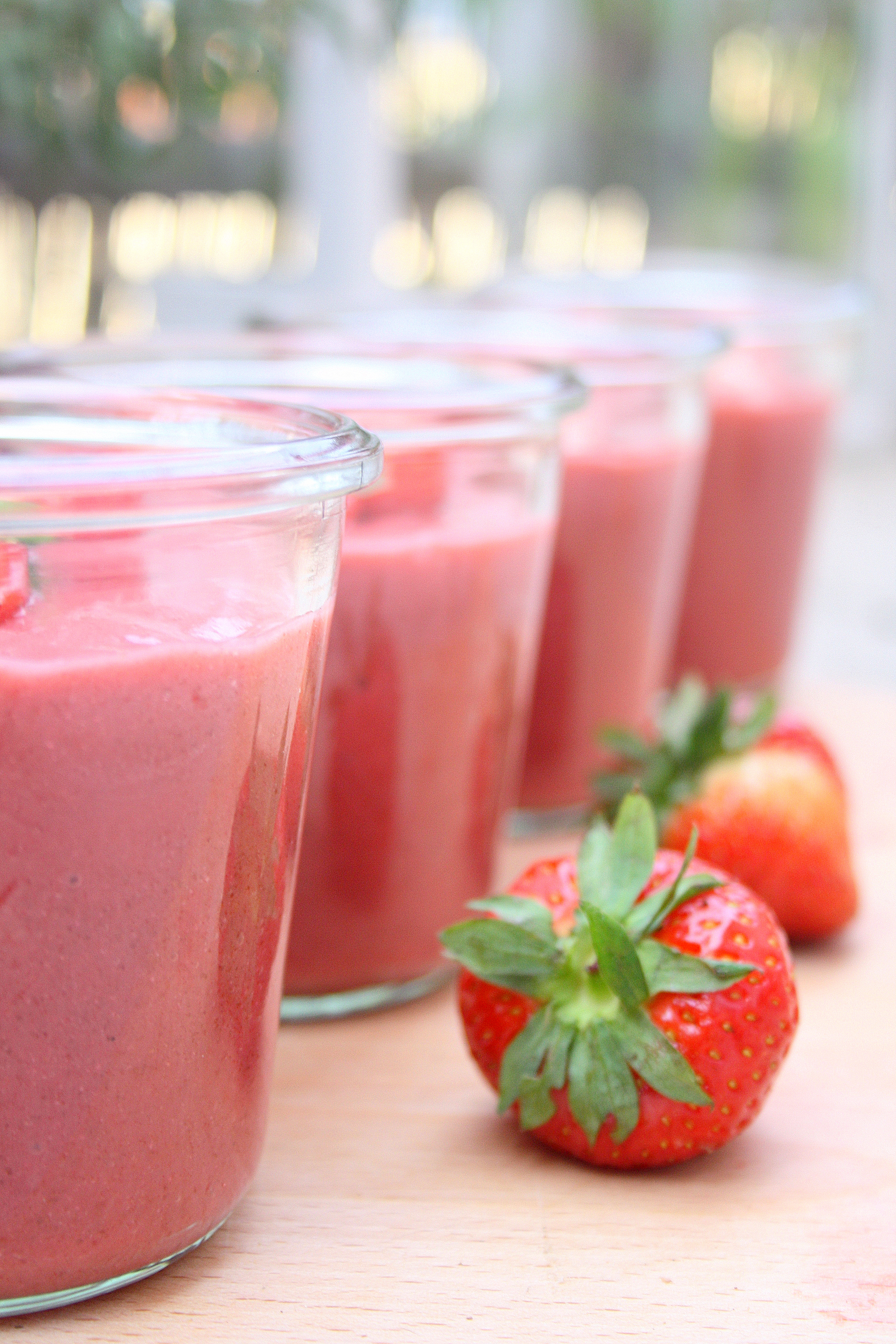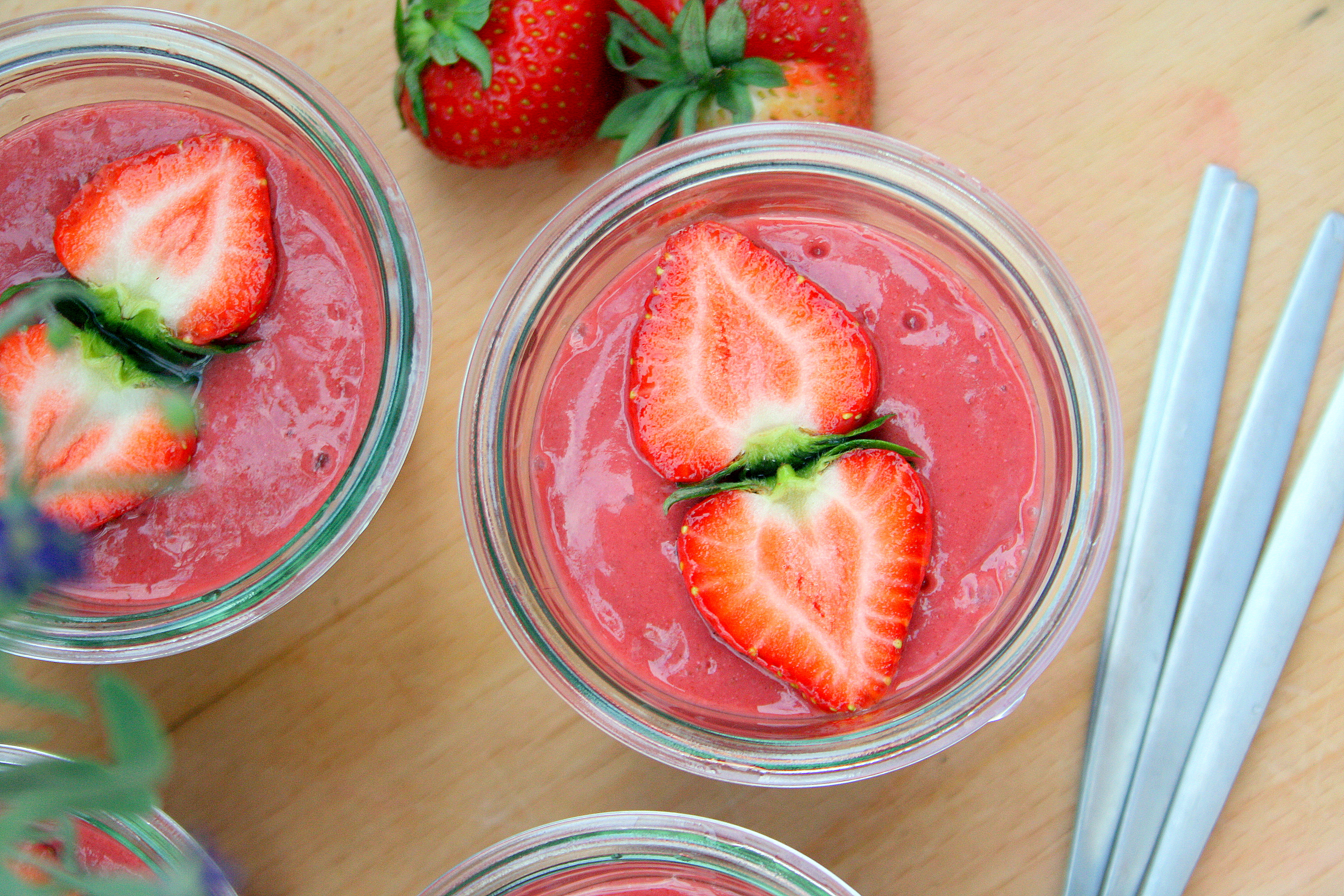 Moje serce jakiś czas temu skradł przepis znaleziony na cudownej stronie Food Porn Vegan Style. Teraz zwłaszcza, gdy sezon na truskawki powoli mija, a owoce są tak dojrzałe i miękkie, że właściwie rozpływają się między palcami, receptury na koktajle i musy z ich udziałem są na wagę złota. Wychodzą bardzo aromatyczne i słodkie. Mus truskawkowy z daktylami i nasionami chia to właśnie coś, co zakwalifikowałabym pod definicję śniadania ratującego dzień. Dlaczego? Ponieważ jest: