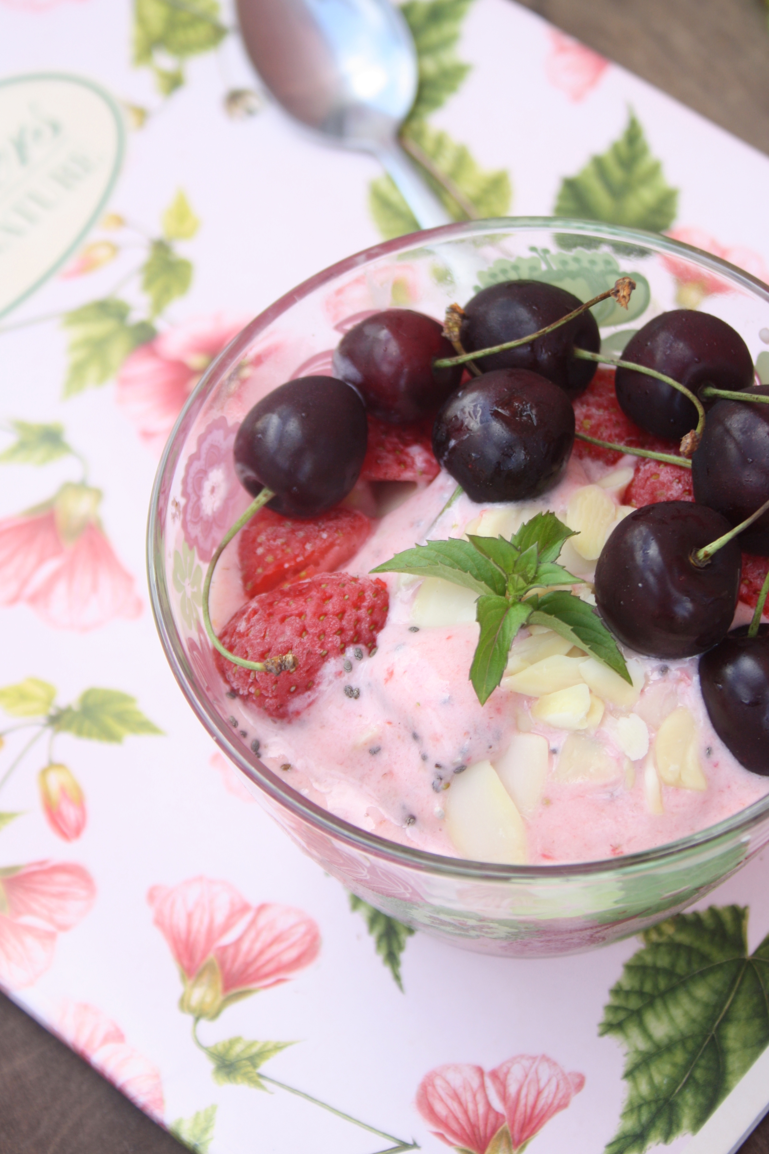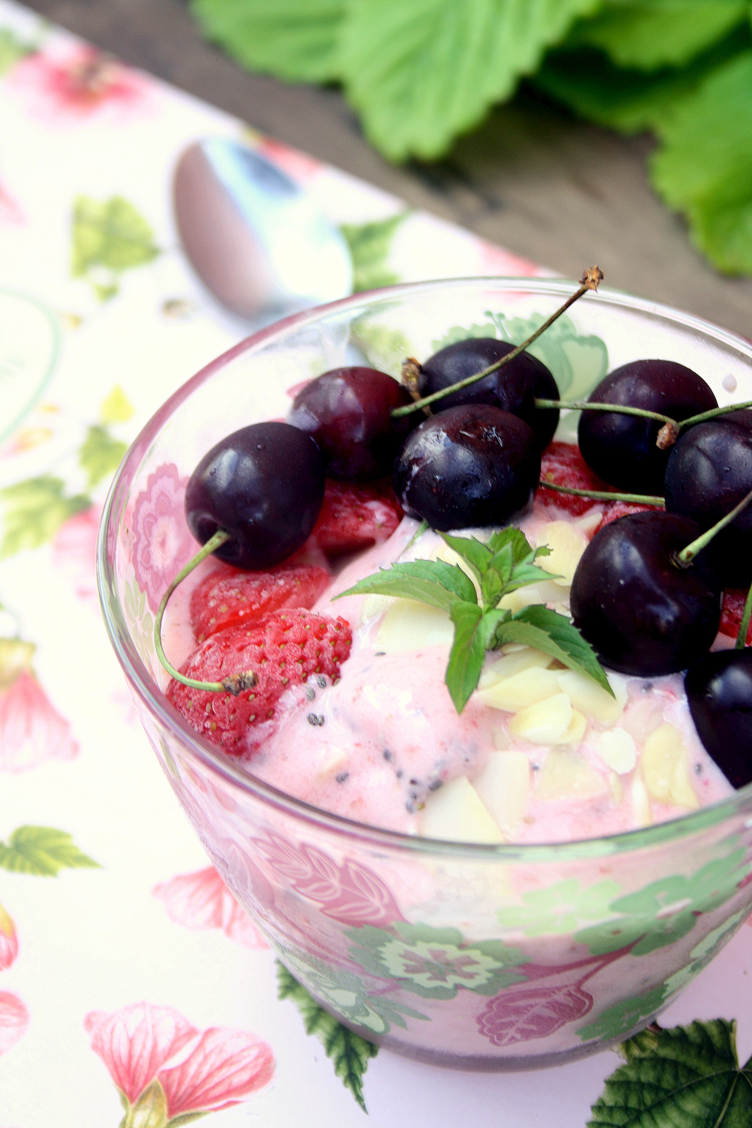 Co do owoców i tutaj mamy przeogromne pole do popisu. Zwłaszcza teraz, ale jeżeli najdzie nas ochota na taki deser w ciągu zimy to mając pod ręką zamrożone letnie owoce bez problemu przygotujemy do kilka minut. Moja ulubiona wariacja zawiera truskawki, jagody lub mieszankę owocową. Sprawdzą się też maliny, wiśnie, jeżyny, poziomki i każde inne, jakie przyjdą Wam do głowy.