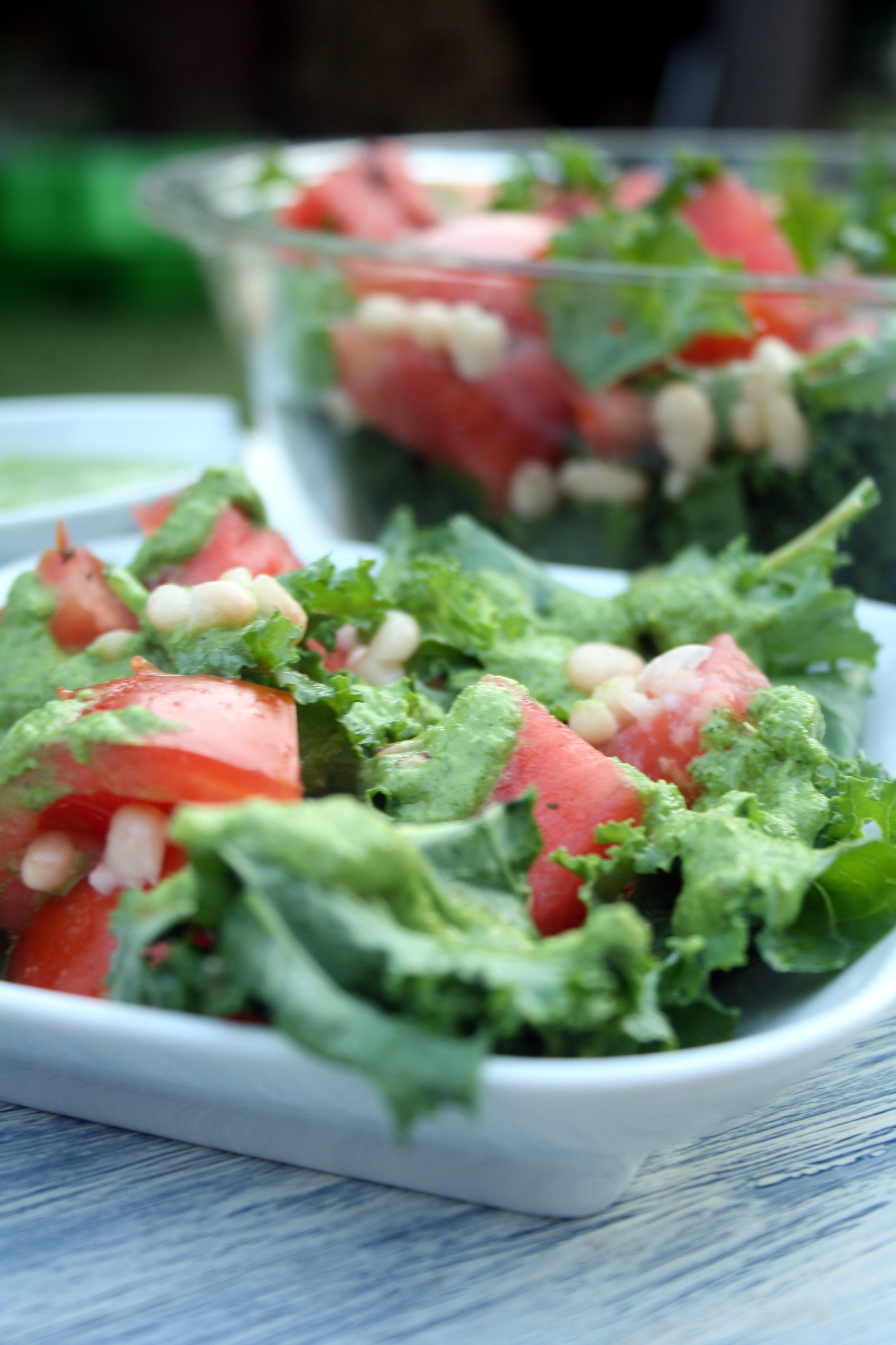 1 myśl w temacie “Letnia sałatka z jarmużem i arbuzem z pietruszkowo-miętową salsą verde.”