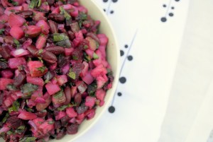 Sycąca sałatka ziemniaczana z burakami i rzodkiewką.
