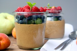 Kawowy pudding z kaszy jaglanej z letnimi owocami