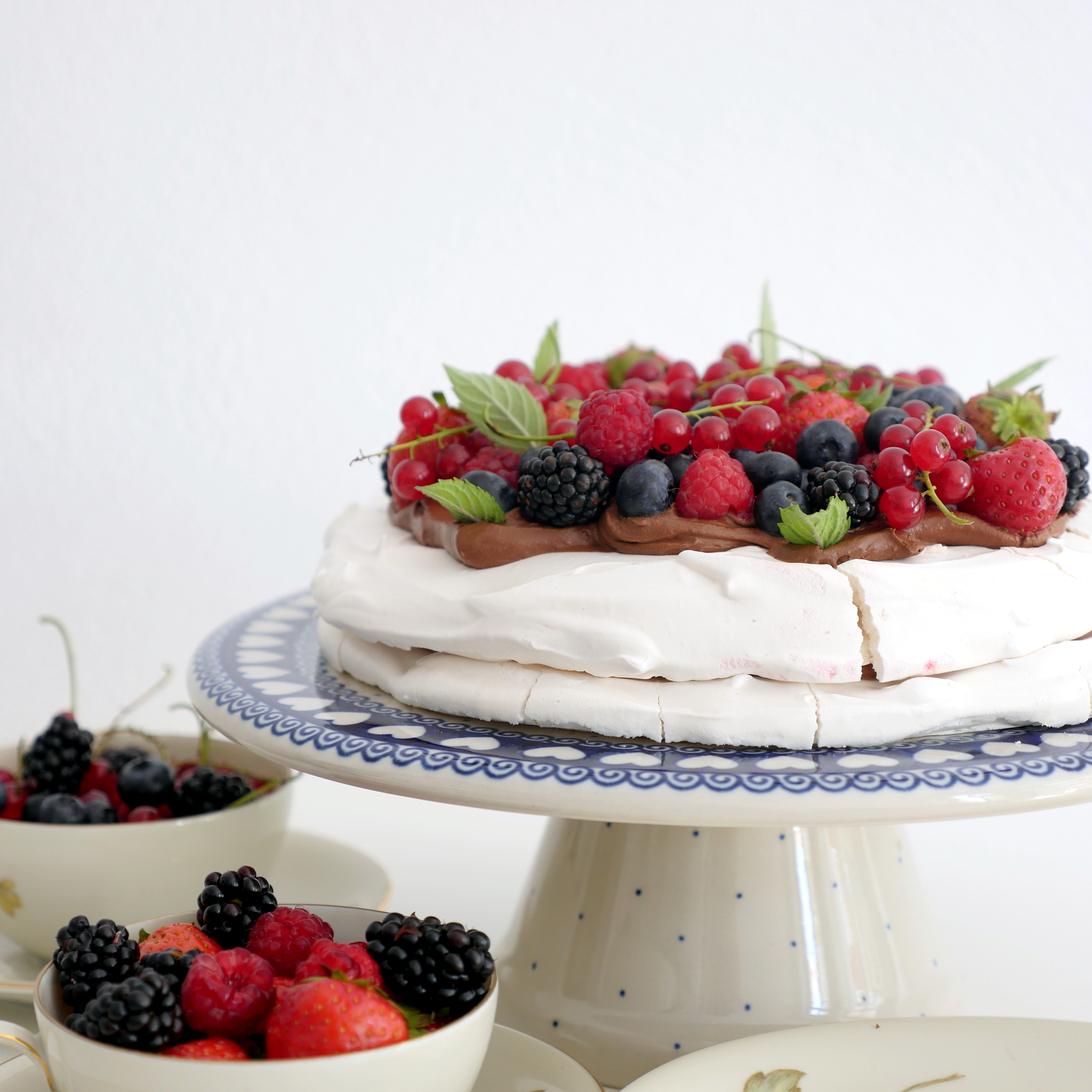 Pavlova z kremem czekoladowym i letnimi owocami