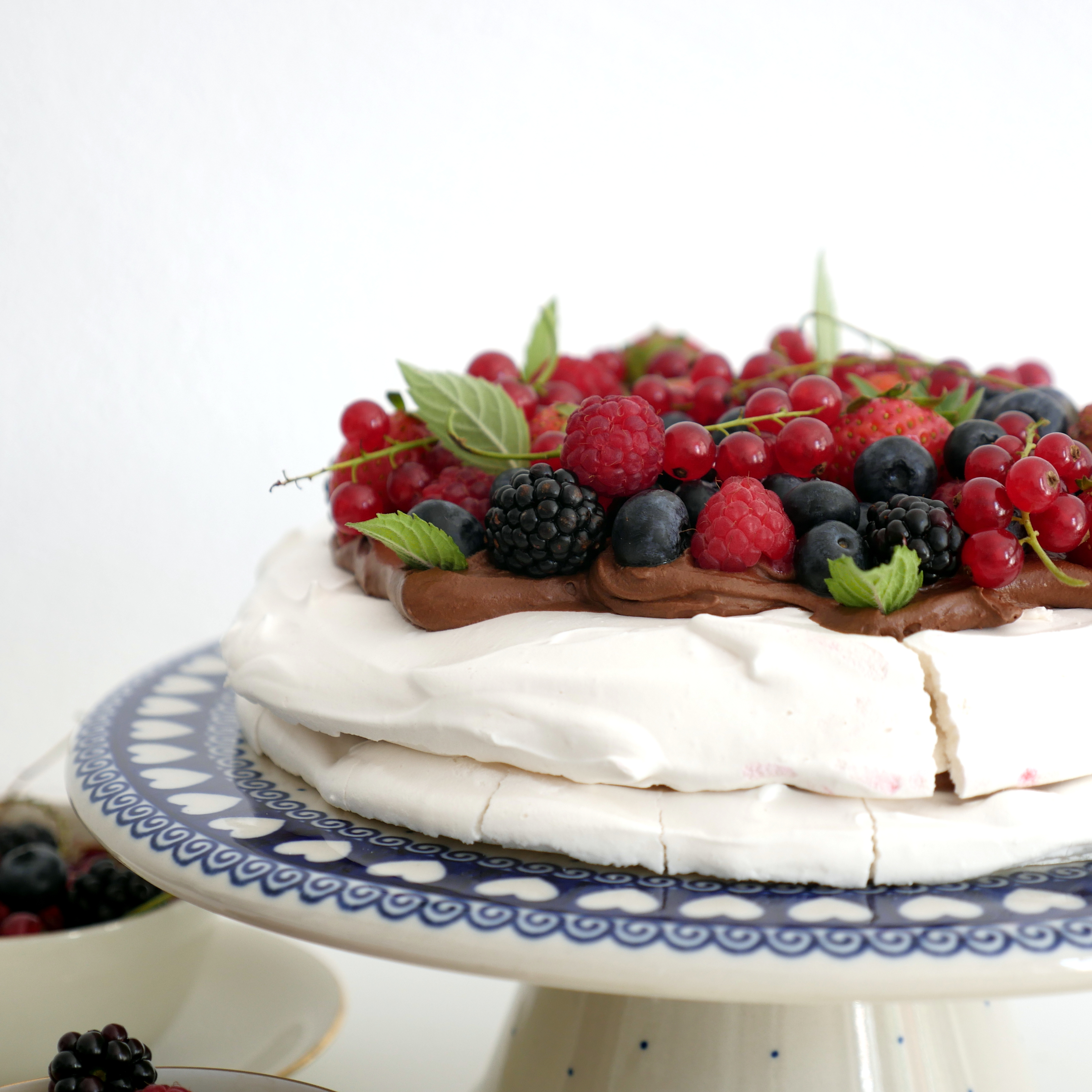 Pavlova z kremem czekoladowym i letnimi owocami