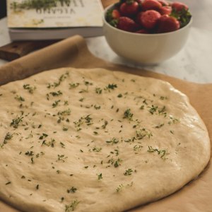 Focaccia z truskawkami i tymiankiem