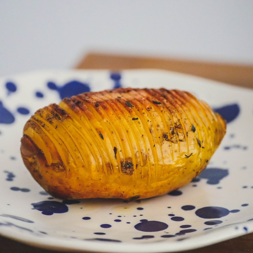 Ziemniaki to moja wielka, kulinarna miłość. Kiedy powiedziałam mojemu chłopakowi o pomyśle na tytułowe danie, czyli zrobienie de facto ziemniaków z ziemniakami, wydawał się być lekko zaniepokojony ideą. Co jak co, ale mojej kulinarnej intuicji powinien ufać, bo nieskromnie mówiąc, jest niezawodna. Pomimo niepokoju, trwałam przy swoim uparcie i przygotowałam obiad dokładnie taki, jak zaplanowałam. Miałam rację – ziemniaki hasselback z sosem „serowym” z ziemniaków to mistrzostwo świata. Podwójny comfort food. Spróbujecie raz, będziecie jeść je ciągle! To danie łatwe i tanie, a jednocześnie totalnie niebanalne, zaskakujące i pyszne. Czego chcieć więcej od porządnej wegańskiej kuchni??