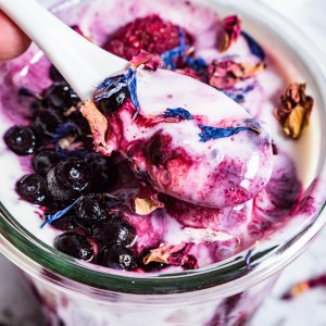 Marmurkowe smoothie jagodowo-buraczane z jogurtem roślinnym