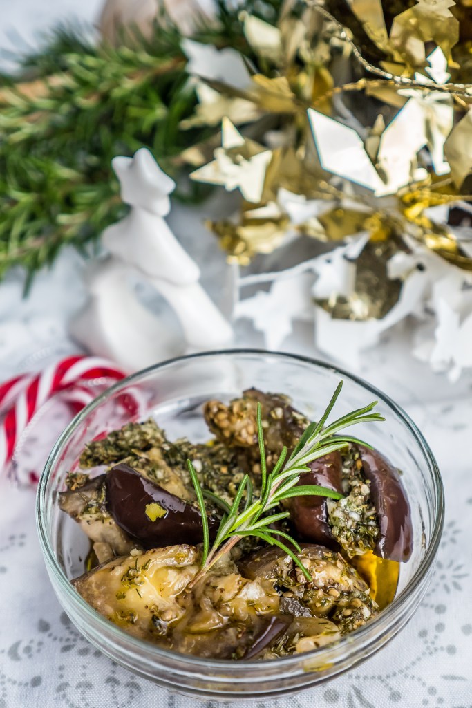 Święta to szczególny czas w roku. Wiadomo, że najważniejsi są ludzie, z którymi spędzamy ten szczególny w roku czas i którzy tworzą odpowiednią atmosferę, ale bez wątpienia w świąteczny nastrój wprowadza nas też jedzenie… Jedzenie, które smakuje rodzinnym domem, dzieciństwem. Przywołuje wspomnienia. W moim rodzinnym domu spotykają się dwie tradycje kulinarne: wielkopolska, bo moja mama pochodzi z Poznania i kaszubska, którą wnosi tata. Oczywiście o tym, co trafiało na wigilijny stół w większości decydowała moja mama, dlatego większość dań była typowo wielkopolska, kapusta z grzybami, kompot z suszu, makiełki i masa pierników. Pierniki piecze się właściwie pod koniec listopada, chowa do puszek, w których „kruszają” czekając na święta. W Wielkopolsce na Boże Narodzenie zjada się szczególnie dużo ryb. Dawniej u nas w domu jadało się zupę rybną, ale tradycję porzucono ze względu na rosnącą w rodzinie liczbę wegan. Obecnie najczęściej rozpoczynamy Wigilię zupą-kremem z buraków i malin z tymiankiem. Inne rybne dania, tak charakterystyczne dla poznańskich świątecznych stołów również wyparły dania roślinne: seleryba, boczniaki po grecku, bakłażan po kaszubsku, pasztet z soczewicy, a tradycyjna warzywna sałatka serwowana jest z majonezem bezjajecznym. W zeszłym roku po raz pierwszy podczas świąt zaserwowałam dla mojej rodziny bakłażana a’la śledź po żydowsku. Danie stało się hitem kolacji, więc w tym roku pojawi się ponownie i myślę, że będzie naszą nową wigilijną tradycją. Sekretem jest dobra marynata, bogata w czosnek, suszone zioła i przyprawy oraz olej lniany nadający roślinnym danią rybnego posmaku ( dzięki zawartości kwasów tłuszczowych podobnych do tych, które zawierają ryby).