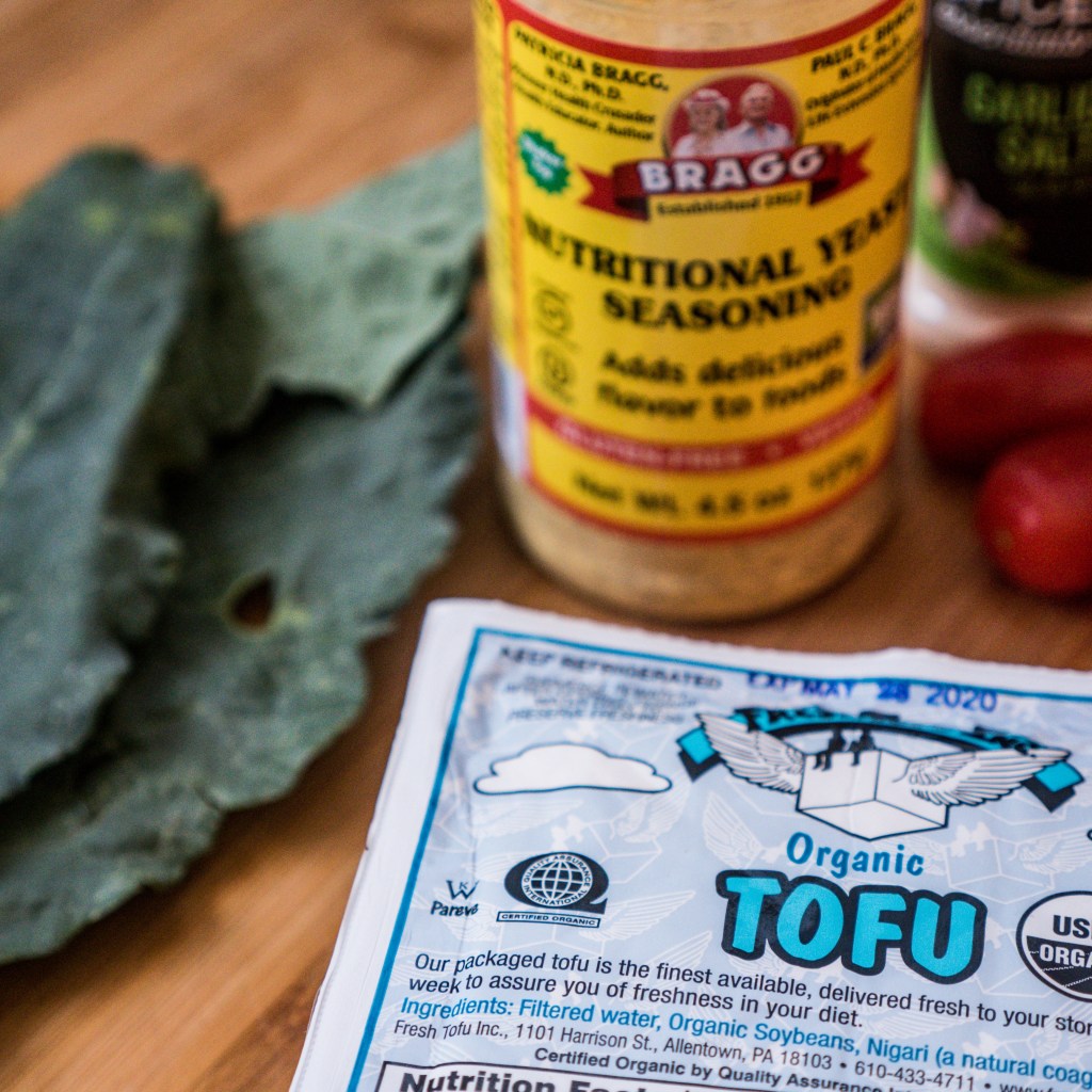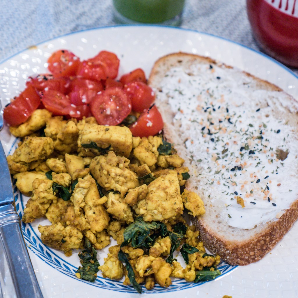 TIP : często zanim dodam do tofu przyprawy, wsypuję garść posiekanego jarmużu.