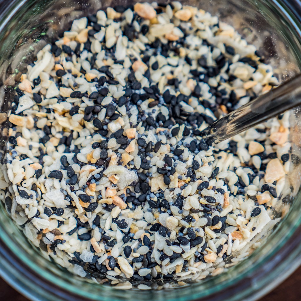 Jedną z moich ulubionych przypraw zza Atlantyku, od której uzależniłam się w Nowym Jorku jest mieszanka Everything Bagel Seasoning. Dodaję ją przede wszystkim do kanapek, ale też podkręcam smak dań z makaronem. Uwielbiam posypywać nią bajgle przed upieczeniem. Nie wiem, co mogłabym powiedzieć o niej więcej poza tym, że jest wspania! Niestety zużywa się w zastraszającym tempie. W związku z tym, że moje amerykańskie zapasy całkowicie się wyczerpały nie pozostaje mi innego, jak przygotowywać Everything Bagel Seasoning samodzielnie. Jest to bardzo proste i ile ma się pod ręką wszystkie niezbędne składniki. Jeżeli nie – podpowiem, gdzie ich szukać.
