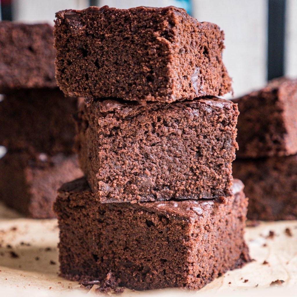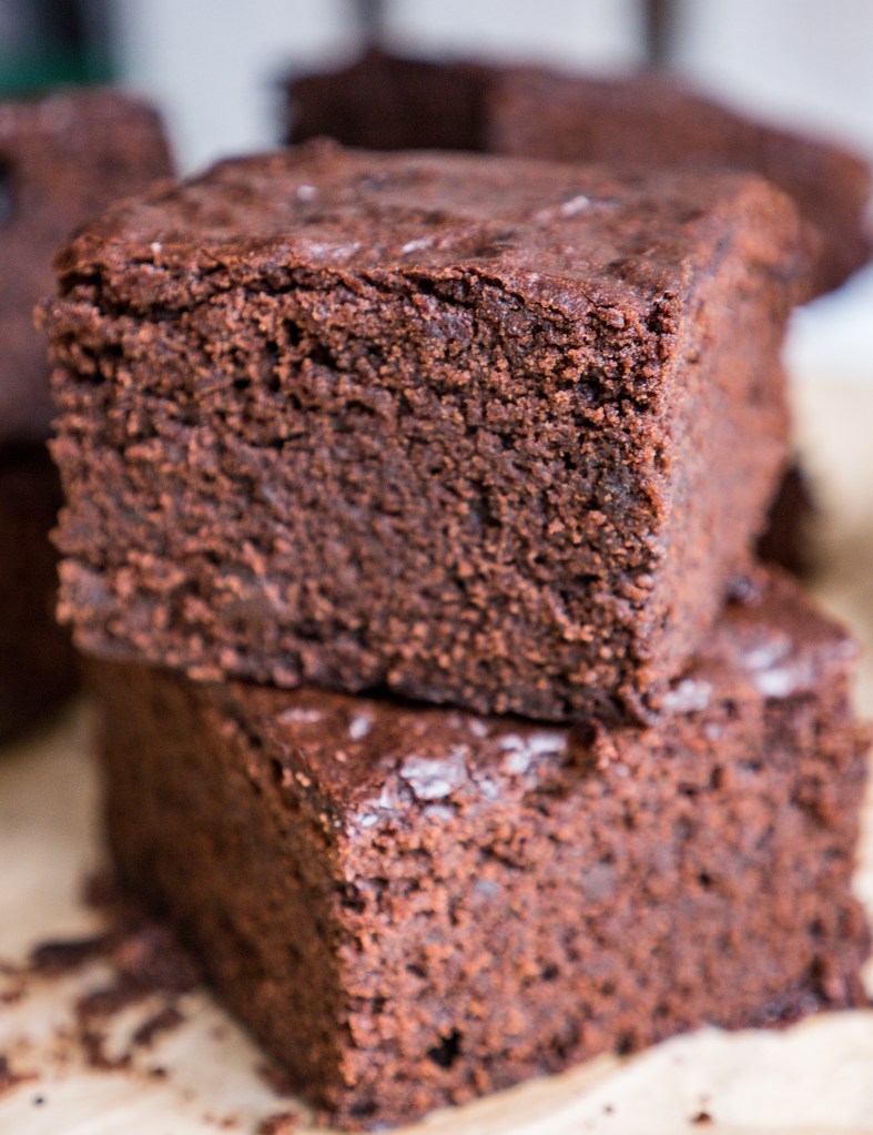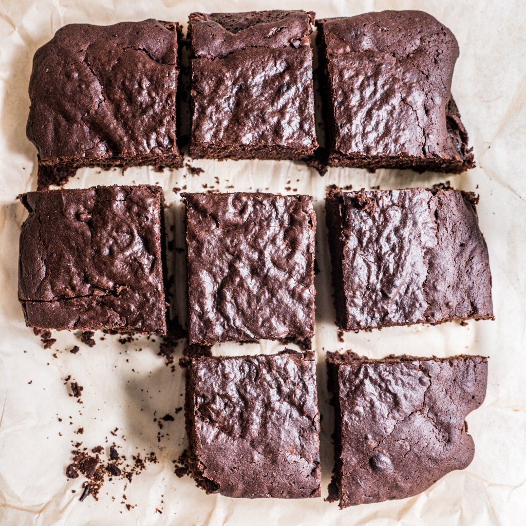 Przepis na dzisiejsze brownie jest mocno rozpustne. Jest ciężkie, tłuste, słodkie i mocno czekoladowe. Ma lekko ciągnące boki i wilgotny środek. Dużo w nim oleju, cukru i czekolady. Powiedziałabym, że można cukier ograniczyć, ale problem polega na tym, że ma on znaczenie dla całości. Karmelizuje się pod wpływem temperatury i wpływa na to, że brownie smakuje tak dobrze i ma pożądaną konsystencję. Ciężką, wilgotną, lekko gumowatą, czyli taką, jaką brownie mieć powinno. W przepisie znajdziecie dwa nietypowe składniki: aqafabę, czyli zabawę po ciecierzycy lub fasoli z puszki czy słoika oraz wegański majonez. Teraz, kiedy niemal w każdym sklepie spożywczym można dorwać roślinny majonez nie czuję zdrożności w podawaniu przepisu na ciasto z jego udziałem. W czasach, kiedy zaczynałam być weganką jedyną opcją, aby zjeść wegański majonez było ukręcenie go samodzielnie z mleka sojowego i oleju. Wówczas przygotowanie mojego brownie byłoby nieco bardziej pracochłonne. Jednak mając pod ręką gotowy majonez przepis naprawdę nie jest wymagający, a efekt! Uuu! Aaa! Musicie przekonać się na własnej skórze! To brownie jest doskonałe!