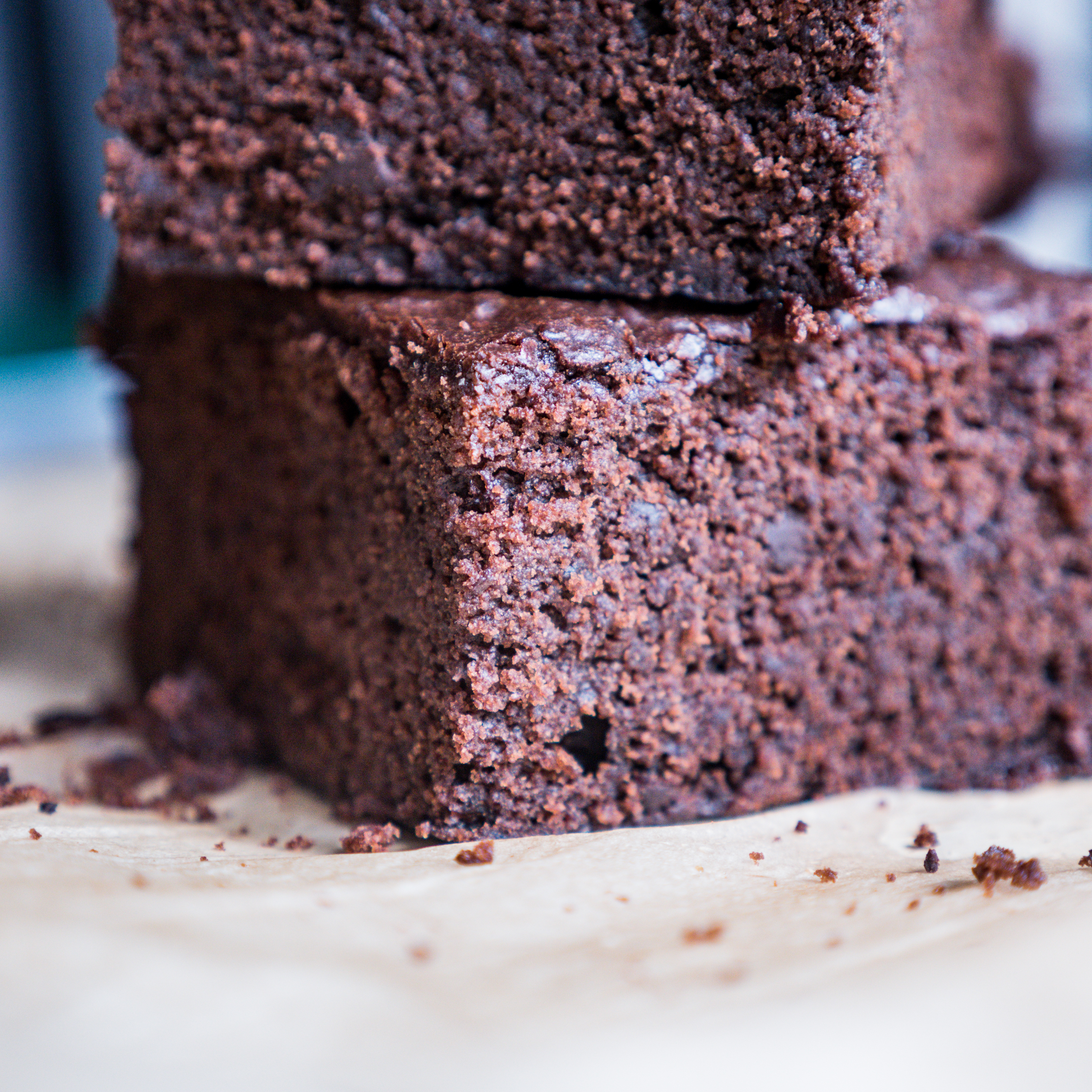 Przepis na dzisiejsze brownie jest mocno rozpustne. Jest ciężkie, tłuste, słodkie i mocno czekoladowe. Ma lekko ciągnące boki i wilgotny środek. Dużo w nim oleju, cukru i czekolady. Powiedziałabym, że można cukier ograniczyć, ale problem polega na tym, że ma on znaczenie dla całości. Karmelizuje się pod wpływem temperatury i wpływa na to, że brownie smakuje tak dobrze i ma pożądaną konsystencję. Ciężką, wilgotną, lekko gumowatą, czyli taką, jaką brownie mieć powinno. W przepisie znajdziecie dwa nietypowe składniki: aqafabę, czyli zabawę po ciecierzycy lub fasoli z puszki czy słoika oraz wegański majonez. Teraz, kiedy niemal w każdym sklepie spożywczym można dorwać roślinny majonez nie czuję zdrożności w podawaniu przepisu na ciasto z jego udziałem. W czasach, kiedy zaczynałam być weganką jedyną opcją, aby zjeść wegański majonez było ukręcenie go samodzielnie z mleka sojowego i oleju. Wówczas przygotowanie mojego brownie byłoby nieco bardziej pracochłonne. Jednak mając pod ręką gotowy majonez przepis naprawdę nie jest wymagający, a efekt! Uuu! Aaa! Musicie przekonać się na własnej skórze! To brownie jest doskonałe!