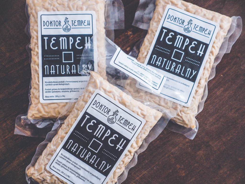 Niedawno przyjechała do mnie paczka pełna tempehu z wrocławskiej manufaktury Doktor Tempeh. Obok tempehu naturalnego do przetestowania dostałam również tempeh z pieprzem, wędzony oraz całkowitą nowość – burgery, czyli tempeh w kształcie krążka, który wystarczy podgrzać, wrzucić do bułki z ulubionymi warzywami i sosami, aby powstał najlepszy burger. Przetestowałam już wszystkie tempehy z oferty i mogę Wam je ze spokojnym sumieniem polecić. Choć tempeh jest produktem coraz bardziej znanym i dostępnym w Polsce, nadal nie jest tak powszechny jak tofu, które możecie znaleźć niemal w każdym dyskoncie. Tofu uwielbiam, jednak muszę przyznać, że tempeh kocham jeszcze bardziej za możliwości kulinarne jakie mi daje. Dla tych, którzy nie wiedzą czym jest tempeh już wytłumaczę. Jest to pochodzący z Indonezji, powstający z fermentowanej soi lub innych warzyw strączkowych czy nasion, produkt spożywczy. Dość typowy składnik kuchni indonezyjskiej. W kuchni roślinnej stanowi zamiennik mięsa, bo jest dobrym źródłem białka i żelaza. Z racji, że jest to produkt fermentowany zachęcam, aby sięgały po niego osoby, które mają problemy gastryczne po spożyciu warzyw strączkowych. Dzięki procesowi fermentacji soja staje się bardziej strawna.
