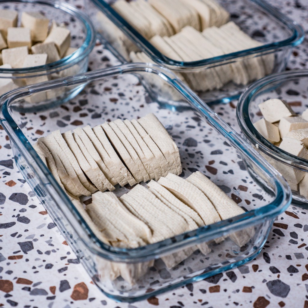- 2 kostki tofu/ 2×18 g / pokrojone w plastry jak na zdjęciu