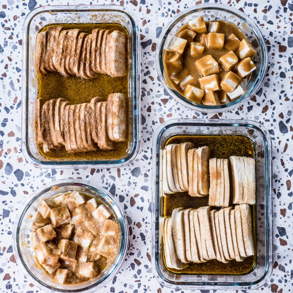 Poniżej przedstawiam Wam cztery marynaty do tofu i podpowiadam, jak takie zamarynowane tofu można wykorzystać. Oczywiście to tylko propozycje. Receptury możecie modyfikować według własnych upodobań i gustów. Warto jednak pamiętać, aby w marynacie nie zabrakło czegoś słonego, kwaśnego i słodkiego, a także tłustego, bo olej będzie tu nośnikiem smaków. Więcej przepisów na tofu znajdziecie TUTAJ.