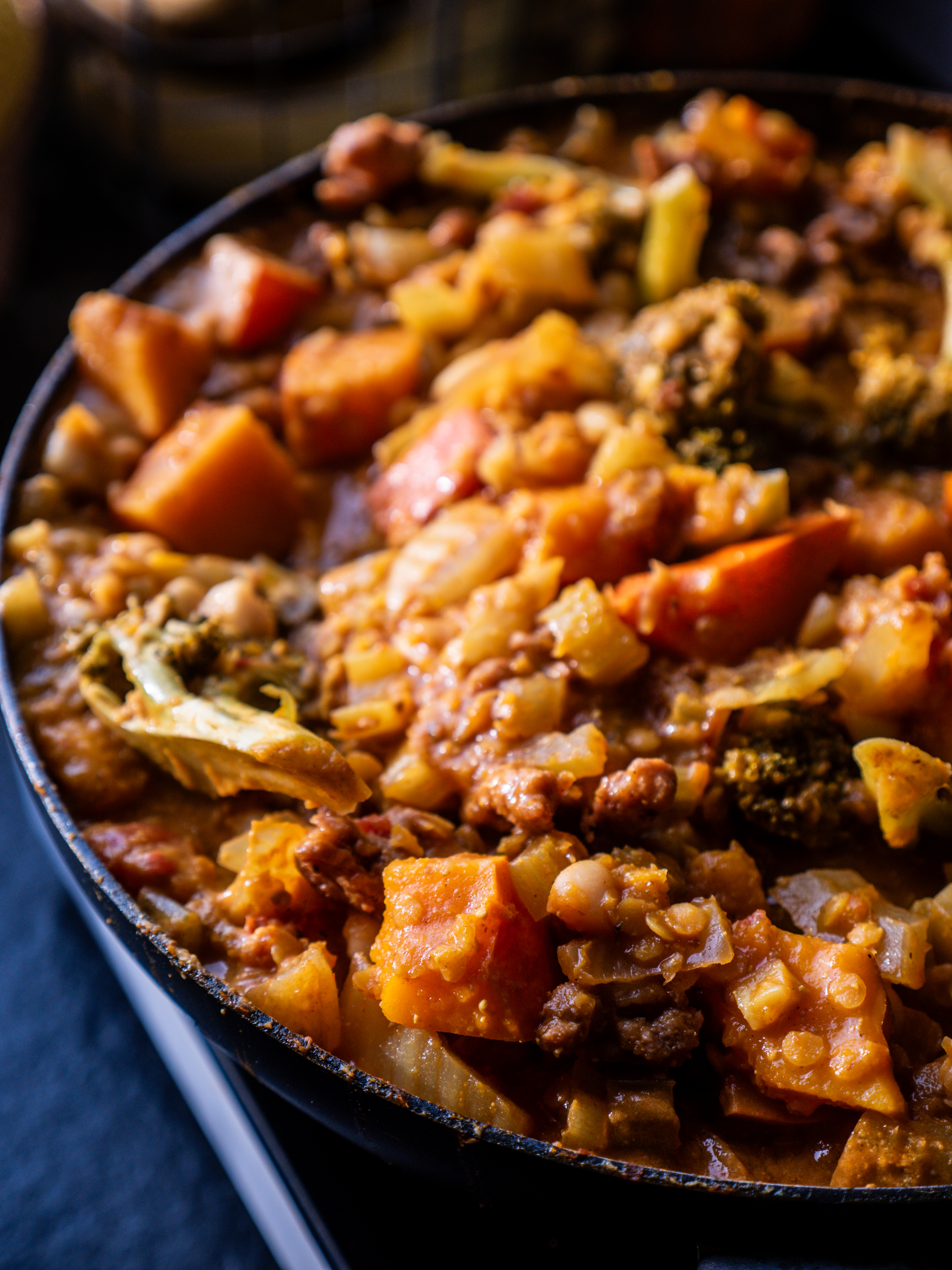 Wreszcie zawitała kalendarzowa wiosna, a ja nieśmiało wracam do Was z nowymi przepisami. Musiałam zrobić sobie chwilę przerwy od blogowania, bo po prostu czułam się w tym temacie trochę wypalona. Na początku roku zawsze mam nieco więcej pracy, mniej energii, bo brakuje mi już ciepełka i słońca, a do tego w tym roku czas ten zbiegł się z podjęciem nowej pracy i odnajdywaniu się w nieznanej mi rzeczywistości. Gotowałam bardzo dużo, jak zwykle, sporo też piekłam, bo chleby na zakwasie to moja nowa miłość. Może kiedyś dojdę do takiej wprawy w temacie, że zacznę się z Wami dzielić przepisami na wypieki na zakwasie, ale chyba jeszcze dużo wody musi w Warcie upłynąć… Tymczasem, choć mamy już wiosnę, zapraszam na sycące, rozgrzewające curry pełne warzyw i bogate w białko.