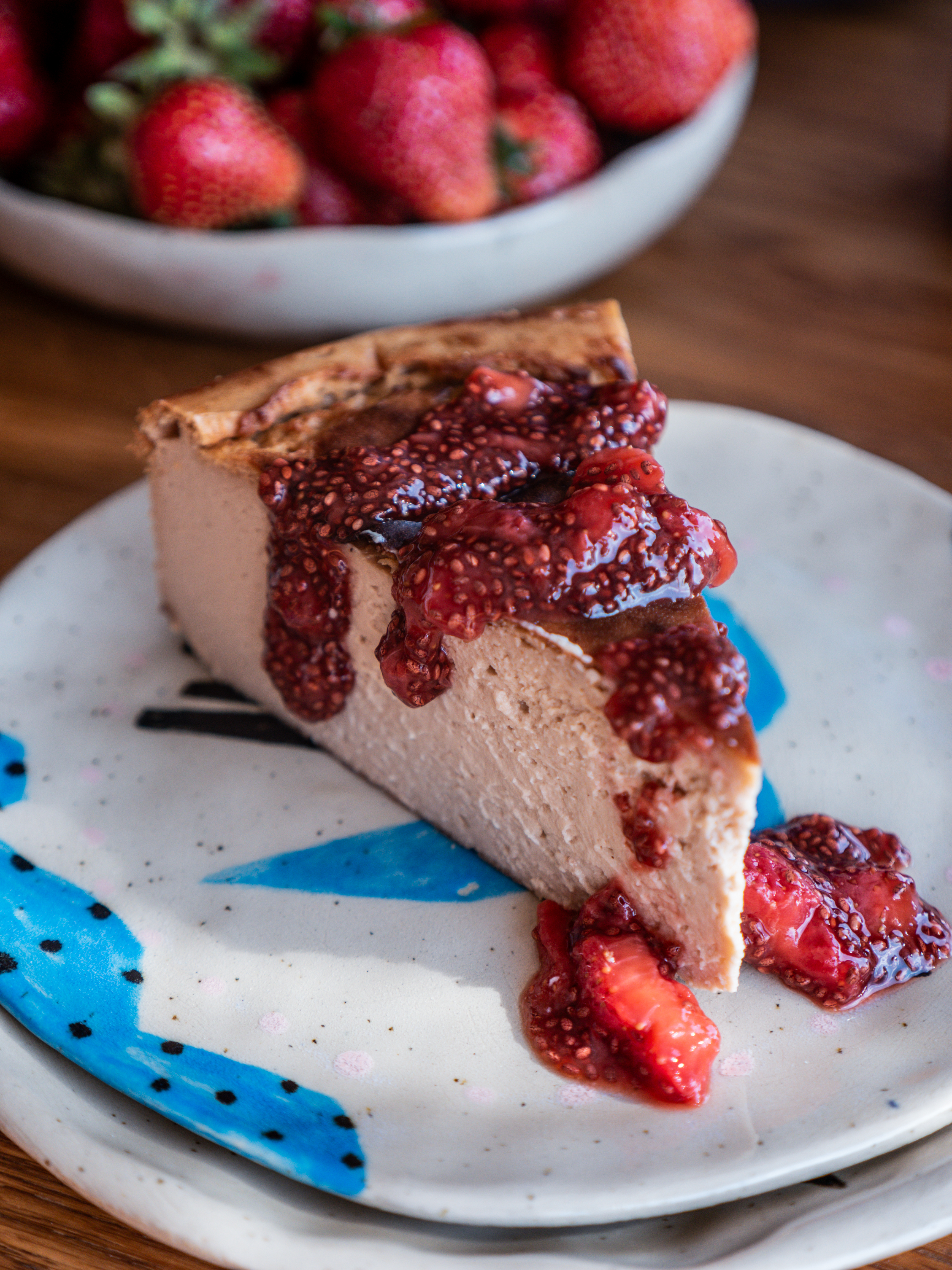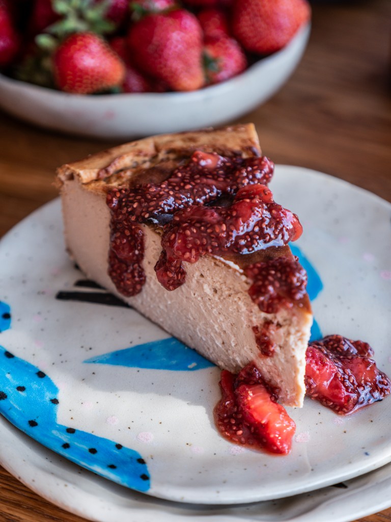 Fistaszkowy tofrunik baskijski jest moją odpowiedzią na jedną z moich ulubionych kanapek: tost z masłem orzechowym i truskawkami. Masło orzechowe nadaje mu dodatkowej puszystości i tłustości. Lubię go bardziej niż ten klasyczny tofurnik baskijski, choć i on jest klasą samą w sobie. Jeżeli chcecie możecie spróbować także wersji z pastami z innych orzechów lub migdałów. Ja testowałam na Wielkanoc w wersji z pastą pistacjową i wszystkim bardzo smakował, ale cała moja rodzina kocha pistacje, więc nie dziwię się, że tak bardzo przypadł im do gustu. Jeżeli podobnie jak my kochacie pistacje – spróbujcie tej wersji.