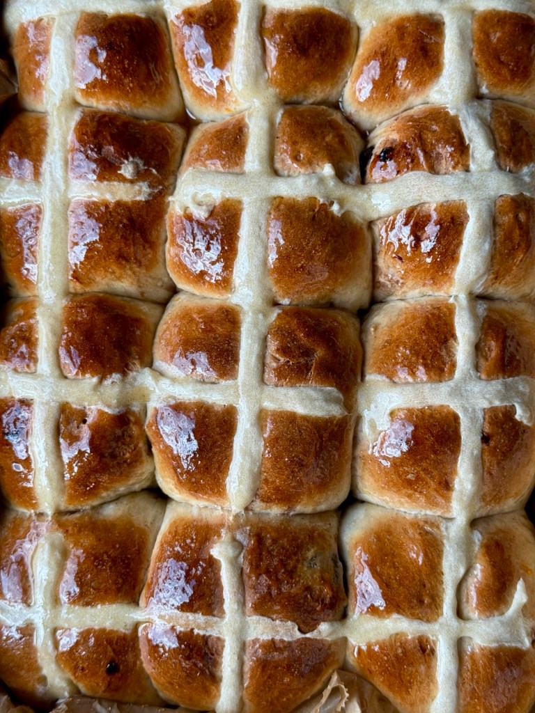 Hot Cross Buns tradycyjnie jada się w Wielki Piątek, stąd krzyżyk na wierzchu. Są jednak tak popularne, że można spotkać je w sklepach i kawiarniach przez cały okres w okolicy świąt wielkanocnych. Przygotowuje się je z przyprawami korzennymi, takimi jak cynamon, gałka muszkatołowa. Ze skórką cytrynową lub pomarańczową. Z rodzynkami lub innymi suszonymi owocami, z orzechami i czekoladą.