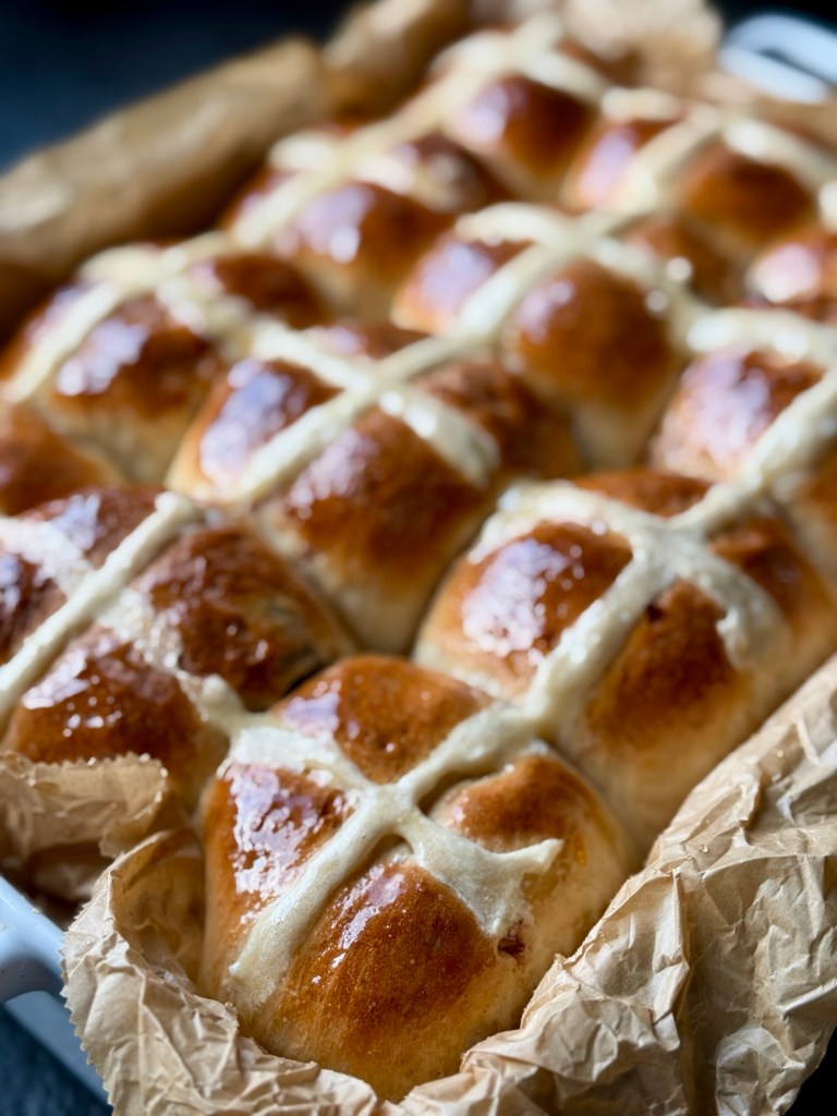 Po tych wielu latach odkąd po raz pierwszy spotkałam się z Hot Cross Buns, w tym roku upiekłam je po raz pierwszy. I to wielokrotnie. Te puchate, brioszkowe bułeczki skradły serca moich bliskich. Po taki udanych próbach postanowiłam podzielić się przepisem. Może ktoś z Was skusi się na nie w nadchodzące święta?
