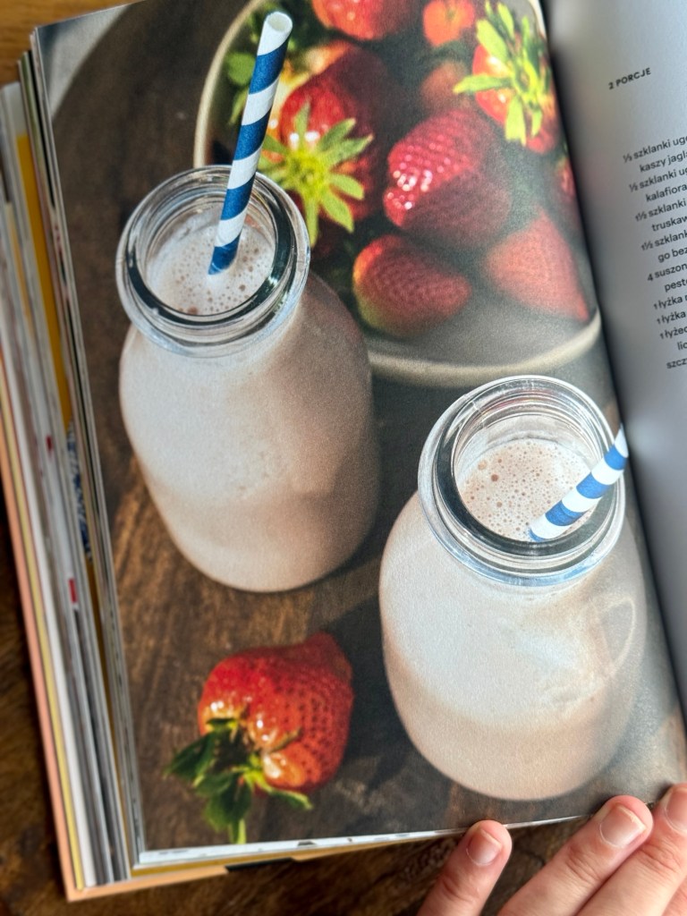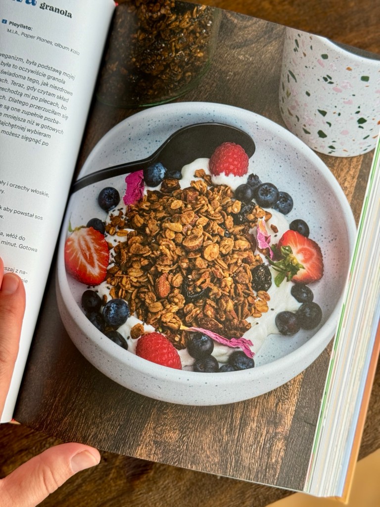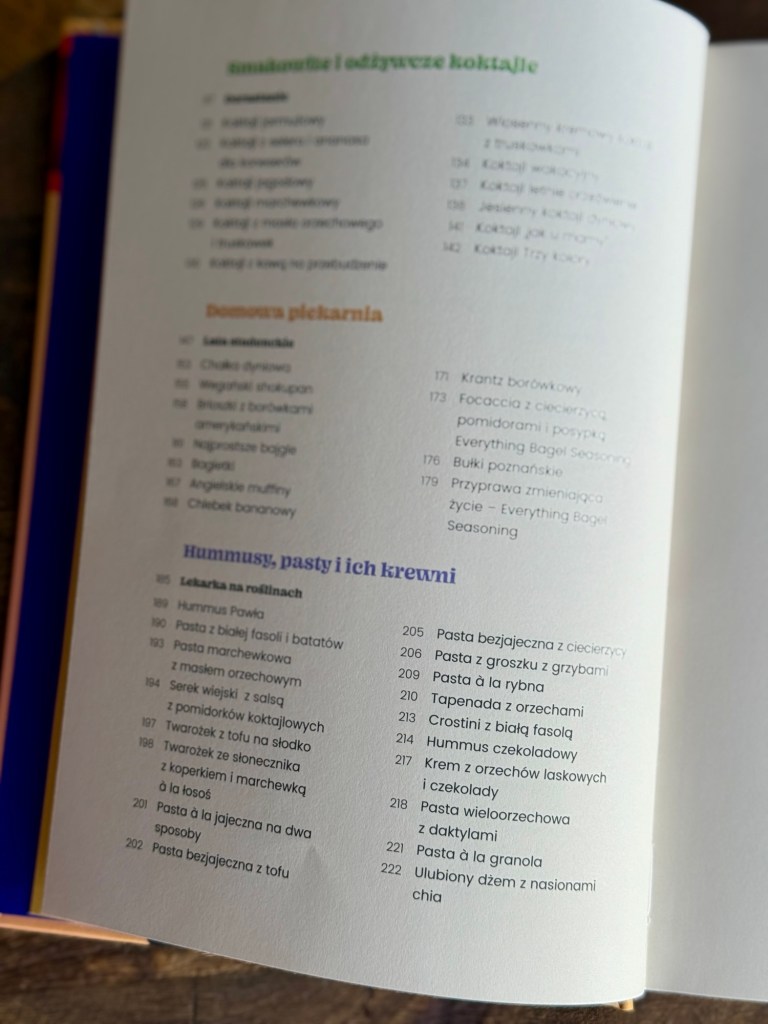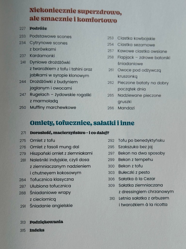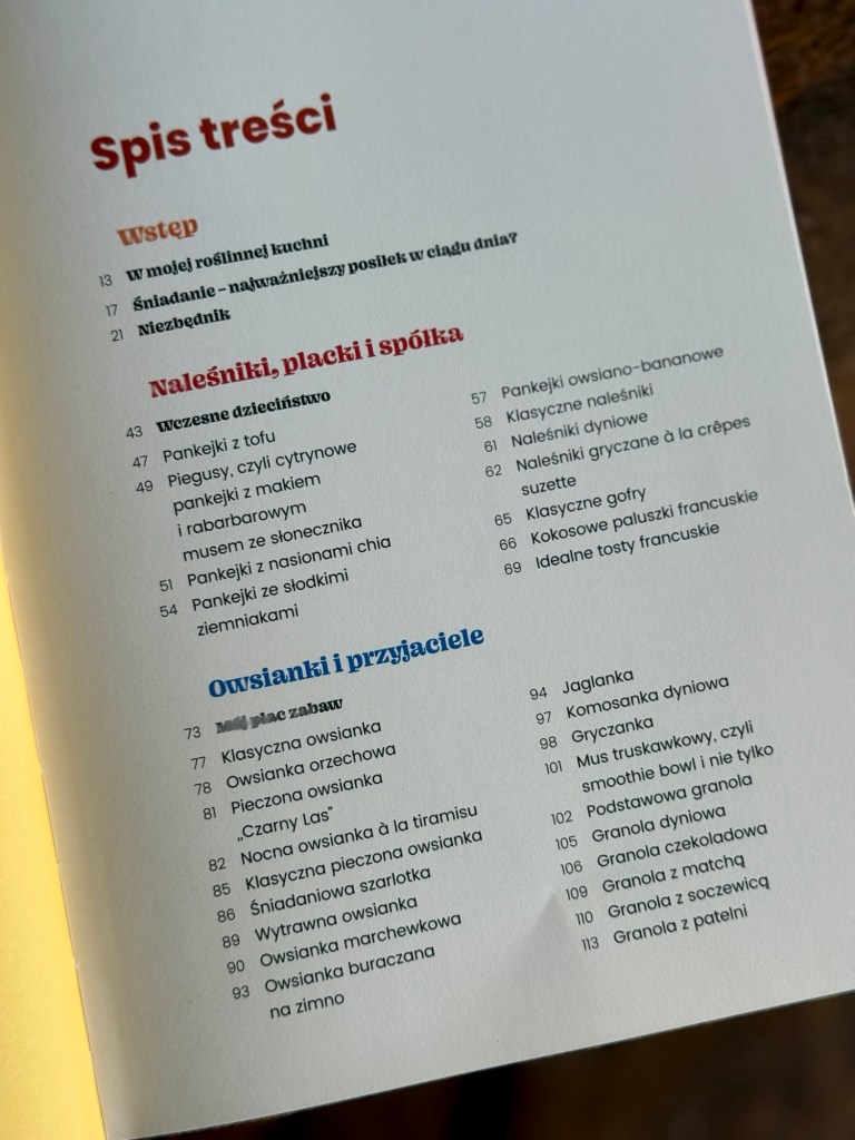 Następnie płynnie przechodzę do przepisów. Książkę podzieliłam na 7 rozdziałów poświęconych naleśnikom i plackom, owsiankom, koktajlom, wypiekom, pastom, słodkim wypiekom i wytrawnym śniadaniom. Naprawdę każdy znajdzie w tej książce coś dla siebie. “Na dobry początek” to przepisy bardzo proste, ale jest też kilka bardziej wyszukanych czy po prostu zaskakujących. Myślę, że spotyka się w tej książce bardzo dużo koncepcji na to, jak można podchodzić do diety roślinnej, z jednej strony bazując na tym, co mamy pod ręką, a z drugiej strony odkrywając zupełnie nowe składniki czy patenty, które możemy wykorzystać w gotowaniu.