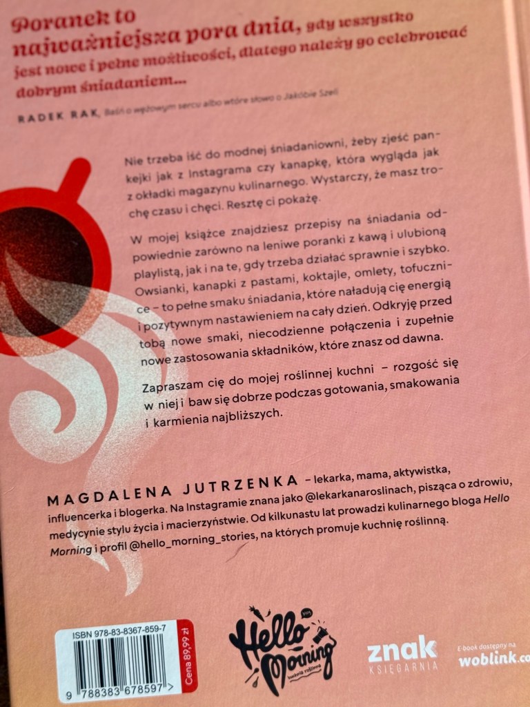 Pomysł na napisanie książki chodził mi po głowie od dawna. Jeszcze tworząc bloga na blogspot (zaczęłam 16 lat temu!) miałam takie marzenie… Jednak, choć blog Hello Morning zebrał swoją stałą i wierną liczbę czytelników, a właściwie w przeważającej części czytelniczek, nigdy nie byłam gwiazdą internetów, nawet tych kulinarnych. Zawsze w tym tworzeniu było więcej pasji, niż jakiegoś planu na siebie, nie mówiąc o śledzeniu trendów czy marketingu. W końcu pochłonięta rezydenturą i swoim wyuczonym zawodem oddałam się niemal w całości lekarskim obowiązkom, wracając czy to na Hello Morning czy na instagrama bloga, od wielkiego dzwonu. Dużo bardziej zaangażowałam się w treści edukacyjne na instagramie @lekarkanaroslinach.